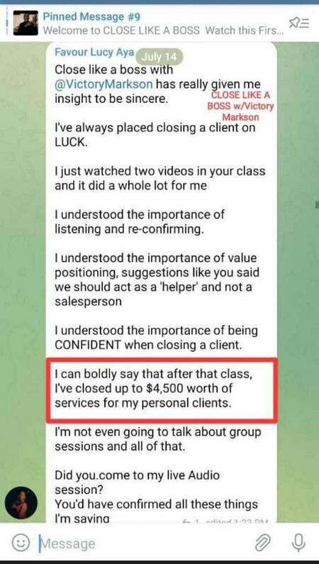 This is not another Course from another "Guru".... #This is PRACTICAL STUFF from High Ticket Closer, Victory Markson, CEO of ACADEMY OF CLOSING. (Hear what business owners like you, who have gone on to Close high ticket deals effortlessly, have to say....)