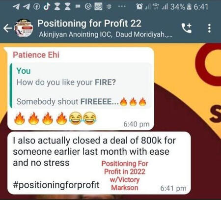 Imagine yourself Closing 5 to 10 deals like that in a month?Please do the calculation yourself.That means...If you're to pay 1 million naira for this insider's only masterclass...It would still be worth nothing compared to what you would get.But we won't charge you 50% of that.Not even 10% of 1 million naira.And damn well enough...You won't even pay 5%.Even if you call us Fada Christmas we won't charge you 1% of 1 million naira for this masterclass.All you need to pay today is N3,500 only ($7!)This is super affordable...why?Because we want a lot of Entrepreneurs to get out of the commodity race and start charging what they are worth.